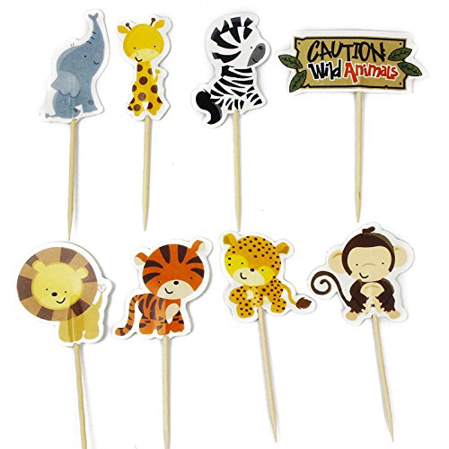 48 Pcs TKOnline Zoo Cupcake Picks Kids Party Decoration Paper Cupcake Toppers, Cupcake Toppers Food Fruit Picks for Decoration