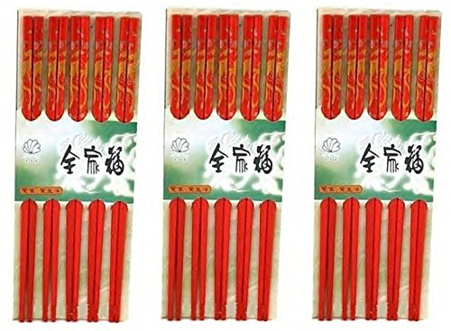 - 30 Red Chopsticks (15 Pairs) - All Wood/Bamboo.