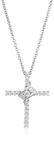-. Title : Platinum-Plated Sterling Silver Swarovski Zirconia Cross 3-Stone Pendant Necklace, 16"+2" Extender