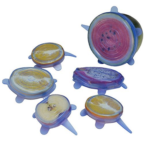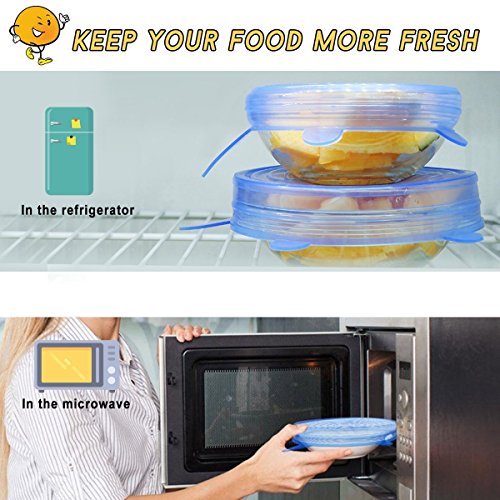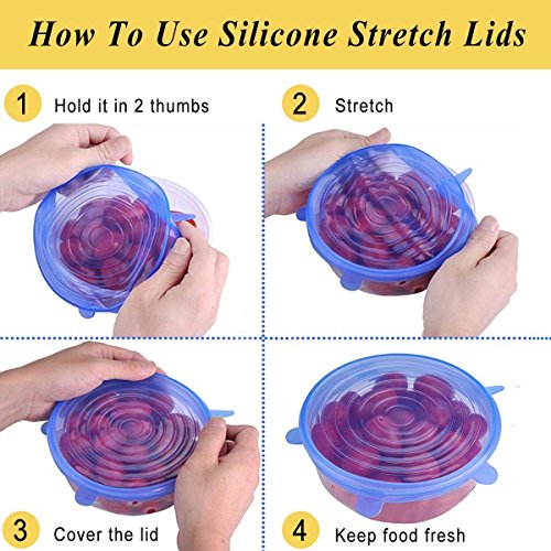 Silicone Stretch Lids,Reusable BPA Free Sealed Cover For Mixing Bowl Cup Bakeware Dish Jar and Food Container,Microwave Oven Dishwasher Safe,6 pack with 6 Various Sizes (Blue)