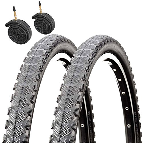 -. Binding : Misc. -. Brand : Raleigh Bikes -. Color : Black -. EAN : 5055924447207 -. Feature : Pair of 700 x 35c Hybrid Bike tires / Tread provides a good level of traction / Low rolling resistance / Will work well on a multitude of terrains / Comes with a pair of Presta valve inner tubes -. Label : Raleigh -. Manufacturer : Raleigh -. MPN : T1811 PV X2 -. PackageQuantity : 1 -. PartNumber : T1811 PV X2 -. ProductGroup : Sports -. ProductTypeName : SPORTING_GOODS -. Publisher : Raleigh -. Size : 700 x 35c -. Studio : Raleigh -. Title : Raleigh CST T1811 Traveller 700 x 35c Hybrid Bike Tires with Presta Tubes (Pair)