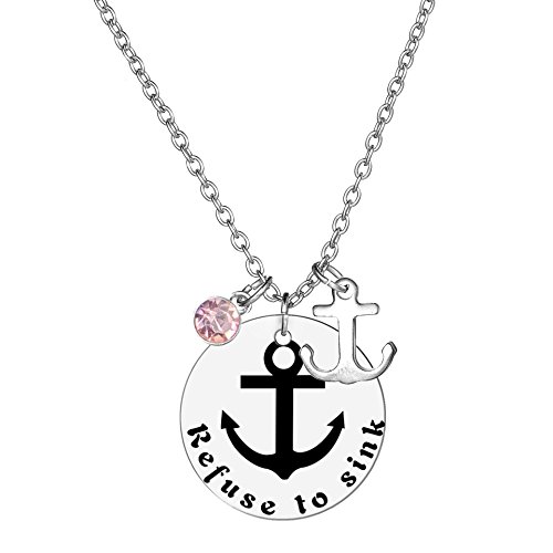 -. Binding : Jewelry -. Brand : TISDA -. Department : girls -. Feature : Material: Stainless-Steel ,Shining crystal / "Refuse To Sink"on a 1 inch stainless steel disc ,Anchor charm:3/5 inch / Chain Length : about 23" / Including a beautiful gift box / If you have any problems with our items or services, please feel free to contact us first. TISDA will try her best to make you have a nice shopping experience. -. Label : TISDA -. Manufacturer : TISDA -. Model : 0055 -. MPN : 0055 -. PartNumber : 0055 -. ProductGroup : Jewelry -. ProductTypeName : FASHIONNECKLACEBRACELETANKLET -. Publisher : TISDA -. Studio : TISDA -. Title : TISDA Stainless Steel "Refuse To Sink" Anchor Inspiration Pendant Pink Charm Necklace