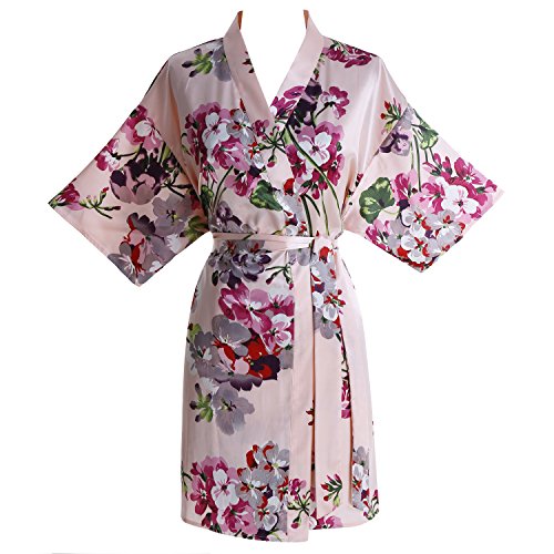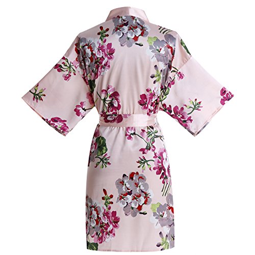Find Dress Women's Kimono Short Robe Satin Floral Flower Sleepwear DI20008-Pink-M