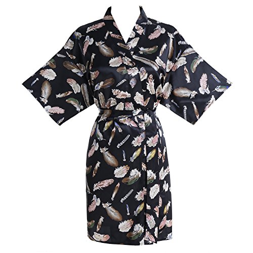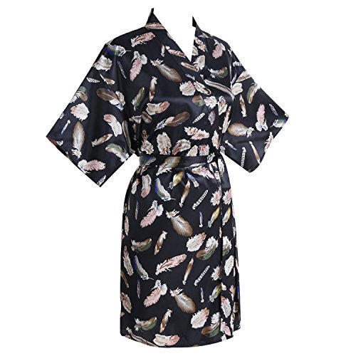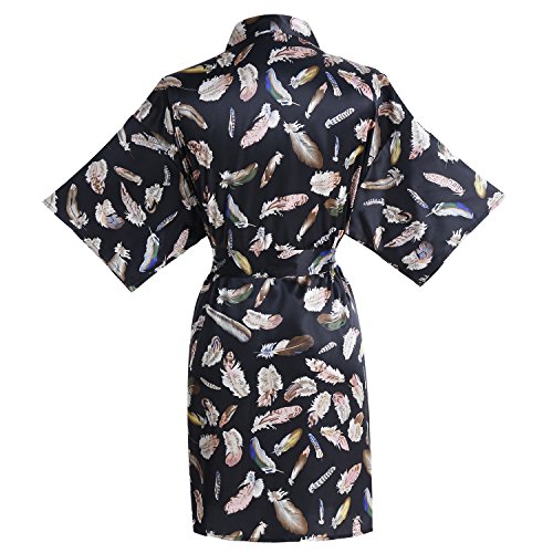 Find Dress Women's Kimono Short Robe Satin Floral Flower Sleepwear DI20008-BlackFeather-M