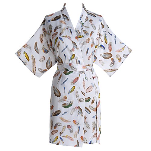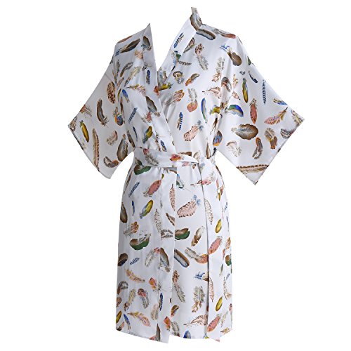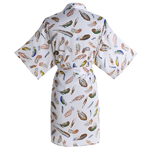 Find Dress Women's Kimono Short Robe Satin Floral Flower Sleepwear DI20008-WhiteFeather-L