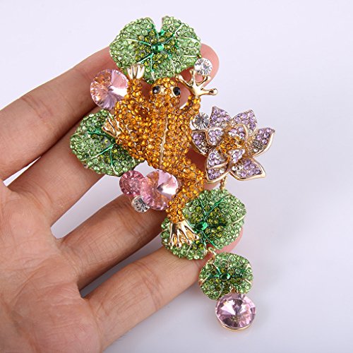 -. Binding : Jewelry -. Brand : EVER FAITH -. Department : womens -. Feature : [!]EVER FAITH is a US registered trademark and Ever Faith Jewelry(former name: Kiss Bling) is its only owner. We will pursue legal action against trademark infringement in case of UNAUTHORIZED sale or resale. / Stone Color: multicolor / Size:10.4cm(4.09") by 6.2cm(2.44") / Wrapping: Come with some spare crystals, and a gift box or favor bag (depend on product size) -. Label : Ever Faith -. Manufacturer : Ever Faith -. Model : A09509-1 -. MPN : A09509-1 -. PartNumber : A09509-1 -. ProductGroup : Jewelry -. ProductTypeName : FASHIONOTHER -. Publisher : Ever Faith -. Studio : Ever Faith -. Title : EVER FAITH Gold-Tone Pond Frog Lotus Brooch Brown w/ Green Austrian Crystal