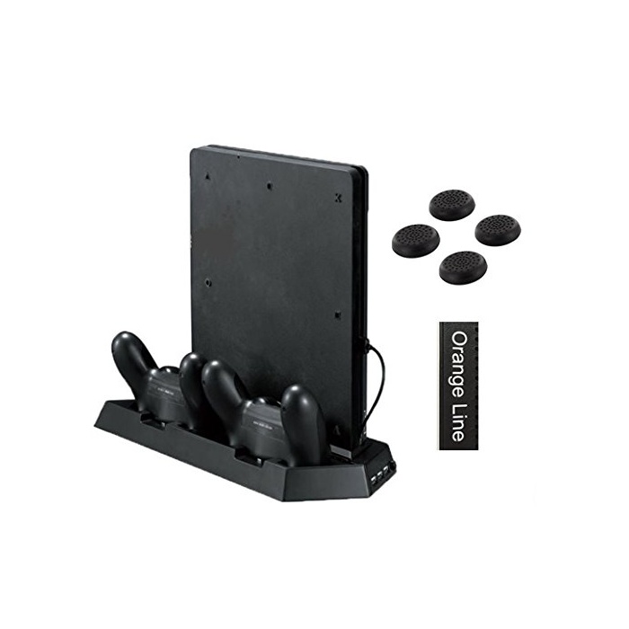 신형PS4슬림 전용종 두어 스탠드 ★정음 팬 있어★ 콘트롤러2대 충전 USB허브3포토【1년 보증이 붙어 있음】【Orange Line】【블랙 slimfan】