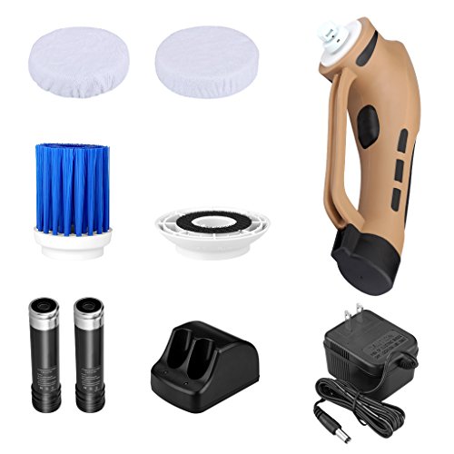 Finether 3 in 1 Automatic Cordless Handheld Car Beauty Tool Polisher Cleaner Waxer Shine Set Automobile Polisher and Buffer Kit with Convertible Brush and Rechargeable Battery