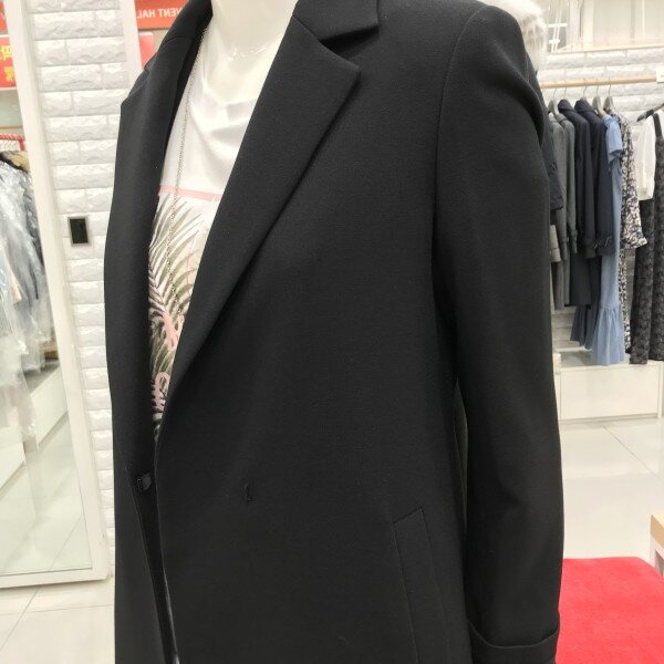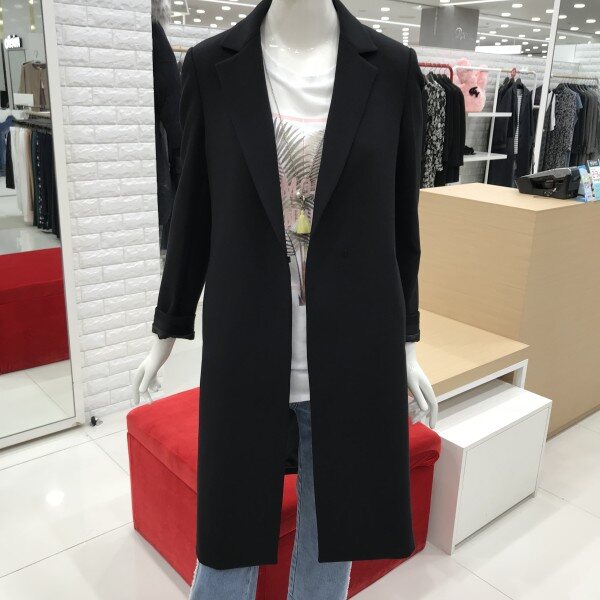 H라인에 깔끔한 롱자겟입니다기본테일러드카라에 슬림한 롱자겟입니다세련되보여요소매단 레터링로고로 포인트를주었어요