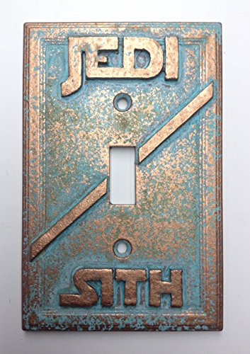 Studio : Sci-Collectables Publisher : Sci-Collectables Binding : Kitchen Product Description Jedi/Sith (Star Wars) Light Switch Cover. Stone Textured, feels similar to sandstone or Aged Copper in color, genuine patina. Raised/Embossed design. Includes 2 Screws painted to match (6-32 3/4" Ovalhead). Fits all Standard US light switches. It may fit many others, spacing between screw holes, 2-3/8" (6cm). Plate measures 3-1/4"x5". (8.25cmx12.7cm) 0
