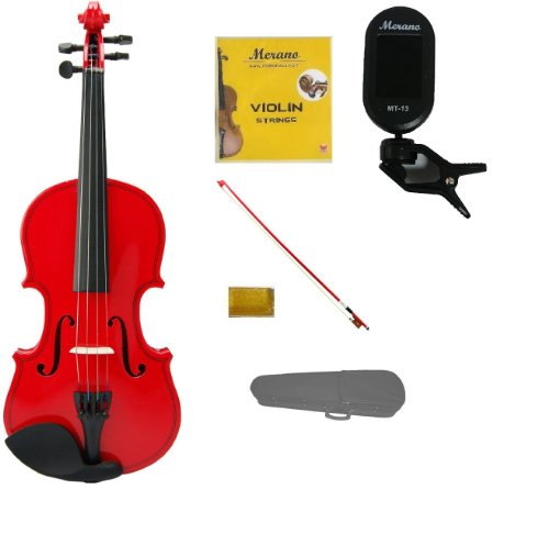 -. Title : Merano 1/2 Size Red Violin with Hard Case, Red Stick Bow+Free Rosin+Extra Set of Strings+Merano Chrometic Clip On Tuner