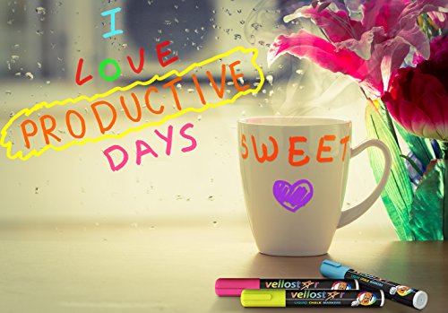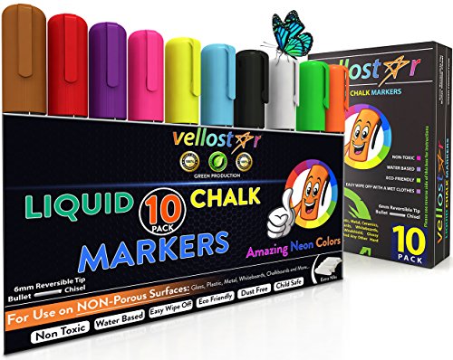 CLEAN, COLORFUL FUN FOR EVERYONE! Whether you're an artist looking for new drawing supplies, a restaurant or bar owner who wants to write today's special on your storefront, a homeowner decorating your home for Christmas, or a supermom looking for a fun present for your little angels, well, look no further, Vellostar Neon-Colored Liquid Chalk Markers are right up your alley! Our UNIQUE reversible tips (chisel/bullet) give You the option to emphasize you drawings & draw the needed attention!