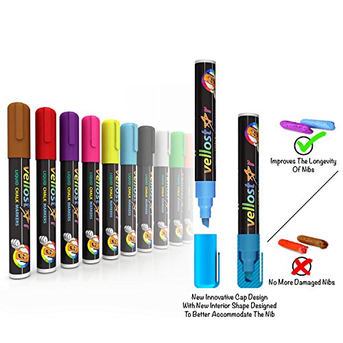 THE MOST VIVID COLORS AT THE BEST QUALITY – OR YOUR MONEY BACK! – 10 Liquid chalk markers for the price of 8. It's time to unlock your creative talent - the whole world is your canvas! Vellostar markers, you see, aren't just your average art supplies, they're a way to enjoy and express yourself without worrying about anything and with complete peace of mind. They even come with dedicated customer service and a 30-day satisfaction guarantee!