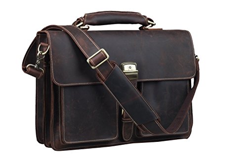 -. Binding : Personal Computers -. Brand : BAIGIO -. Feature : 100% brand new & High quanlity / Made by top Layer Crazy Horse leather and high quality nylon lining / Front flap with brass buckle lock which is great to quick-access items / Interior with two large internal pockets and one compartment pocket, zipper pocket, wallet holder, cell phone holder and two pen holders. Front exterior with two pockets and one zipper pocket on the back side / Full leather adjustable shoulder strap , top handle with hanging lock key -. ProductGroup : PC Accessory -. ProductTypeName : CARRYING_CASE_OR_BAG -. Title : Baigio Crazy-Horse Leather Briefcase Lock Key Designer Inspired Messenger Bag Handbag Fit 15" Laptop