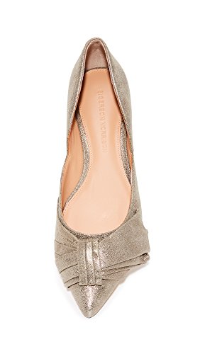 Product DescriptionElegant Sigerson Morrison pumps with pleated trim at the pointed toe, rendered in cracked metallic leather. Leather sole with low rubber heel.0
