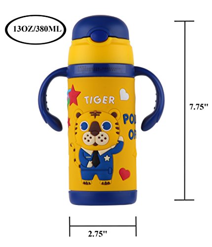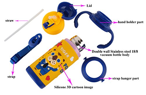 BEST QUALITY - Material: Durable stainless steel18/8 interior and exterior body +FDA approved Silicone 3D cartoon image wrap + FDA approved PP straw + Food grade PP cap and handle. LEAKPROOF. withstand the demands of everyday use.