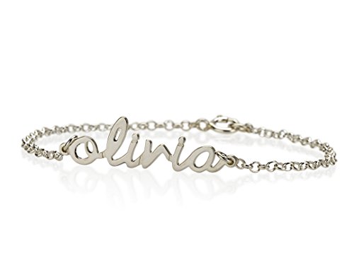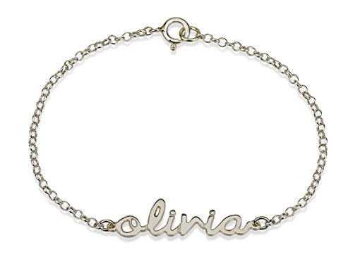 -. Feature : Personalize this 925 Sterling Silver name bracelet with any name / Next, find this item in your Shopping Cart and select "Gift Options" / Type any name in the Gift Note box; it can be up to 10 character per bracelet / Please specify chain length: 5.5",6.5",7.5"