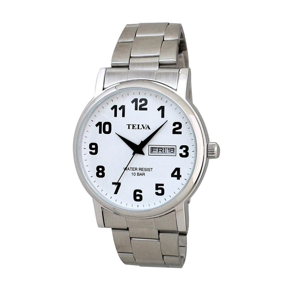 | シンプルで見やすい文字板と10気圧の防水性を備えた、普段使いに最適なスタンダードな腕時計。バンドは丈夫でさびにくいステンレスを使った、サイズ調整が簡単にできるフリースライドタイプ。3時位置に日付と曜日を表示。 |