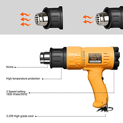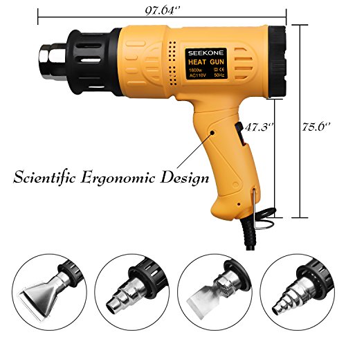- ★A Great Item to Have in Your Tool Set--Seekone heat gun have a scientific ergonomic design handle can prevent repetitive strain injuries and other musculoskeletal disorders, It's also a professional safe tool that can keep working over 1200 hours, the overload protection design can protect the heat gun from damage by high temperature.