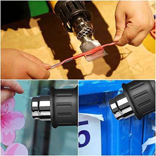 - ★4 Nozzles Attached--Spoon reflector nozzle for shrinking heat shrink tube; Cone nozzle for Welding, shrink sleeving ; Fish tail surface nozzle for drying, thawing ; BBQ lighter for light the coal and so on; with ventilation slots, heat dissipation design can cooling down the motor during working to extend the using life