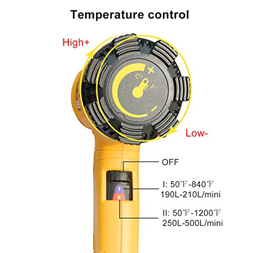 - ★Strong Power With 2 Modes--1800W Seekone heat gun provide strong power to heat up to 1202℉(650℃) quickly.2 modes: I:50-450℃,190-210L/min; II:50-650℃, 250-500L/min