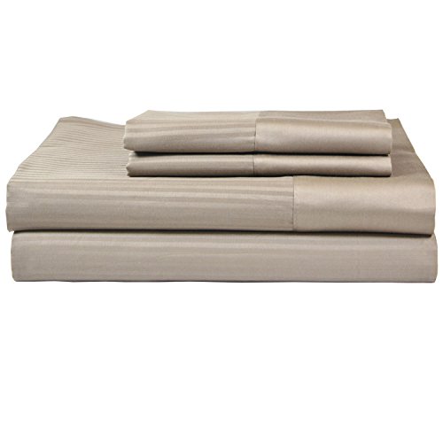 H.N. International Group Castle Hill 500 Thread Count Pinstripe Sheet Set with Solid Hem, Full, Cocoa