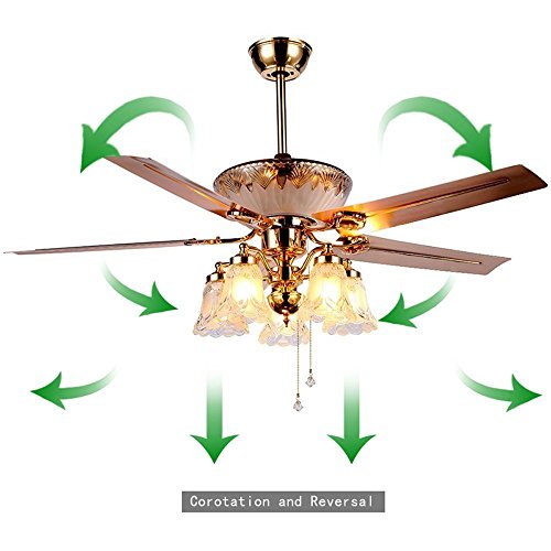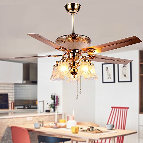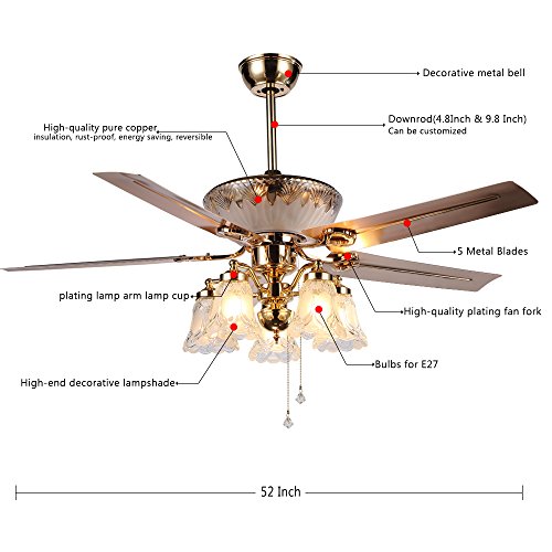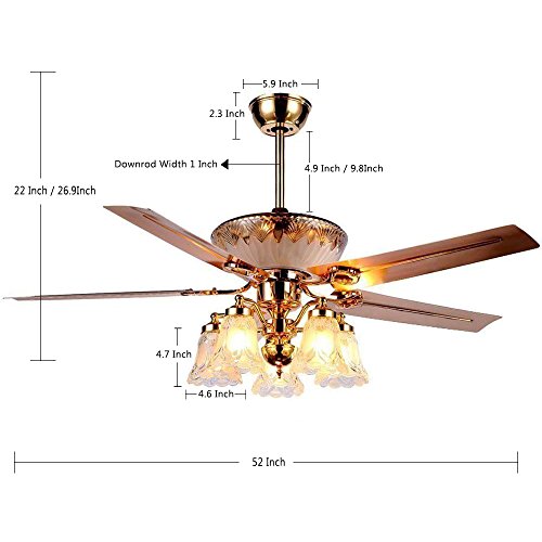 5-Lights, 5-Metal Blades and 5 Frosted Glass Lampshade, 2 Downrod, Indoor Ceiling Fan and Have a Sleek and Noble Appearance.