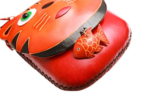 PurseWorld Women's Handmade Leather Cat Shoulder Bag