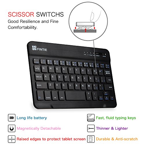 Package Dimensions:9.2 x 6.6 x 1.5 inches Item Weight:13.8 ounces Shipping Weight:14.4 ounces (View shipping rates and policies) Manufacturer:Fintie ASIN:B06XG86M5J Customer Reviews:4.0 out of 5 stars 45 customer reviews 4.0 out of 5 stars Best Sellers Rank:#525 in Computers & Accessories > Tablet Accessories > Bags, Cases & Sleeves > Keyboard Cases Date first listed on Amazon:March 7, 2017