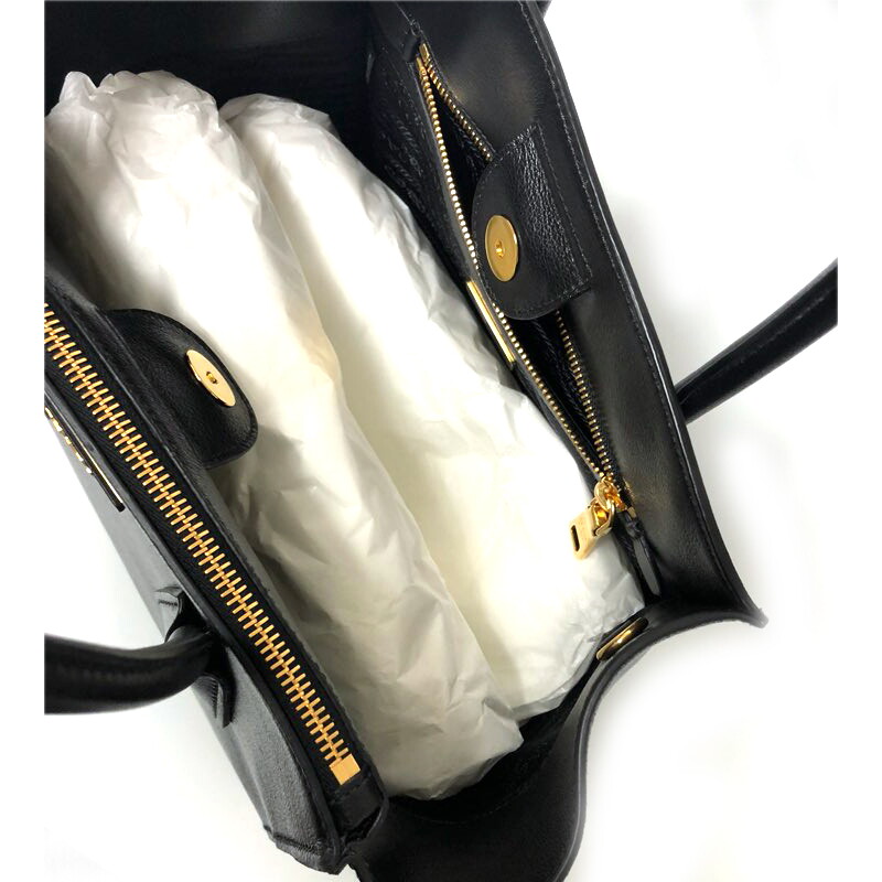 -100% 천연 송아지 가죽소재에 메인 금장메탈 프라다 로고 장식이 고급스러움을 더하는 제품입니다
