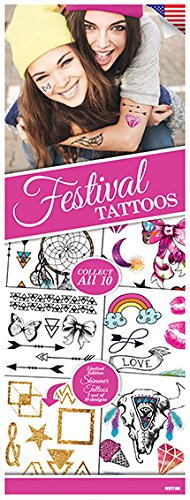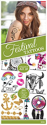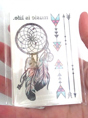 Festival Temporary Tattoos, 10 unique sheets, dream catchers, arrows, bows, tribal, glitter and more