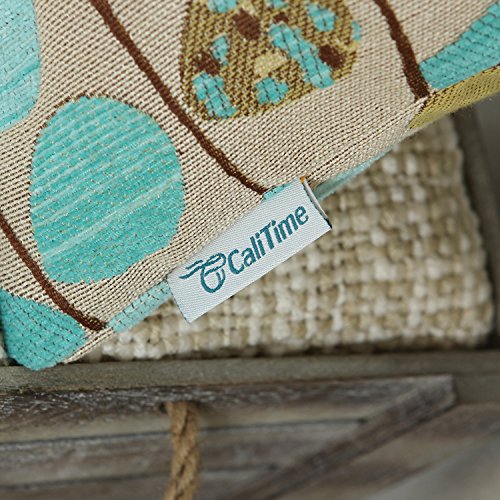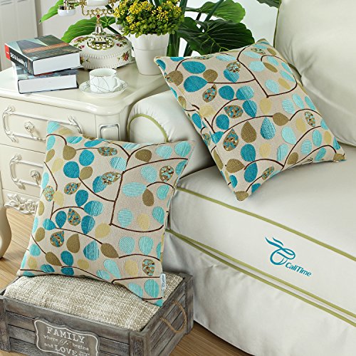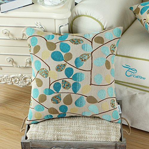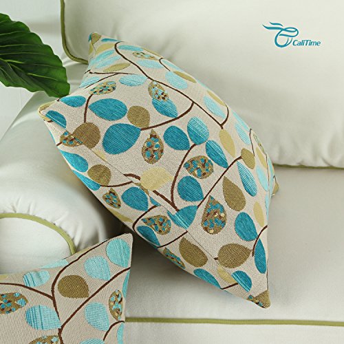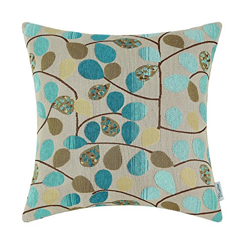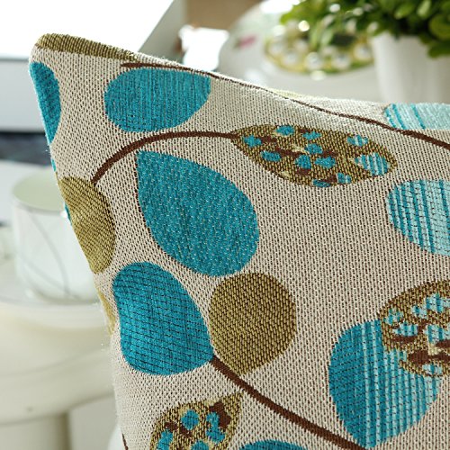 CaliTime Throw Pillow Cover 18 X 18 Inches, Luxury Chenille Cute Leaves, Both Sides, Ecru Teal