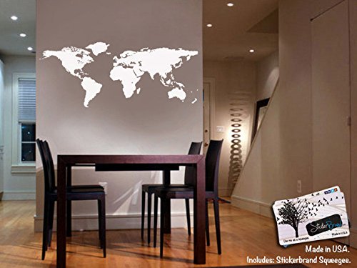 White World Map Wall Decal Sticker - Stickerbrand Home Decor Vinyl Wall Art. Large (21in X 51in) Die-Cut Size. Removable.