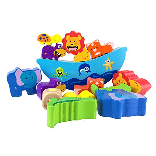 -. Feature : An adorable all wooden balancing game for 1 to 4 players, the boat size is 7.5x 3.3 inches, ages 3 and up / Including 12 pcs animals blocks and 1 boat, stack fun animal shapes like the lion, elephant, crocodile, tortoise, hippo, and fox / Take turns to place as many animals on boat without any falling. The last to successfully add a blocks wins! / Keep balance of the boat, develops fine motor skills while encouraging critical thinking and problem solving / All-natural wood pieces with bright, bold colors. Develops hand-eye coordination, fine motor skills and dexterity