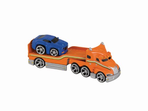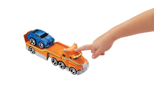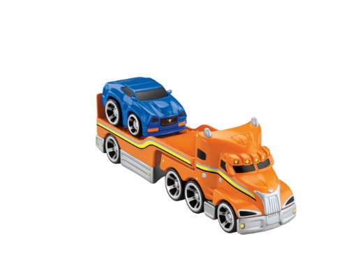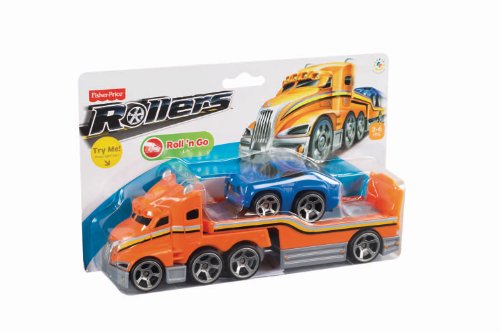 -. Feature : Press button for lights & sounds! / Freewheeling action - push & roll / Flatbed can hold 2 cars (1 car included) / Just the right size for preschoolers / Collect other Fisher-P.R.Ice Rollers vehicles! (Each sold separately and subject to availability)