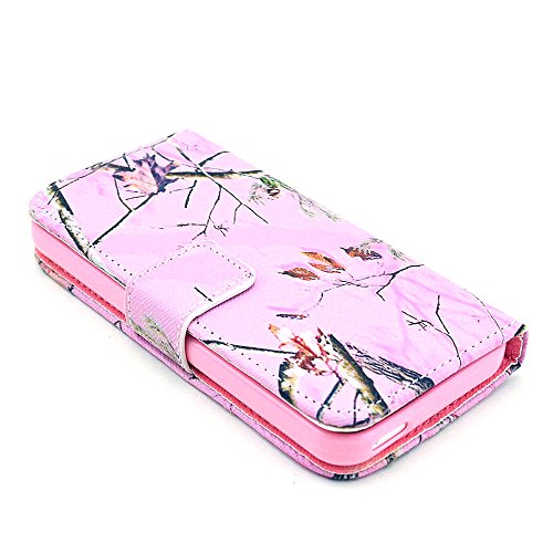 iphone 5C Case, Tree Camo Flip Wallet Credit ID Card Slot Holder Phone Case With Stand --Retail Package W Screen Protector --Pink