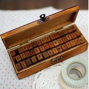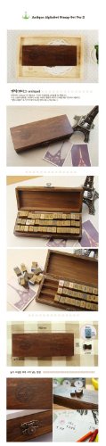 Wooden Rubber Stamp Box - Vintage Print Style - Capital Alphabet Stamp and Number Stamp - 42 Pcs Letter and Number Stamp Set
