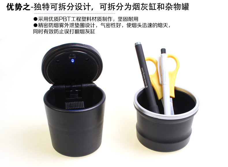 1、精密防烟雾外泄垫圈设计,气密性好,使烟头迅速的熄灭,同时有效防止误打翻烟灰缸