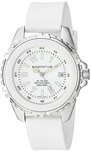 Momentum Women's Quartz Stainless Steel and Rubber Diving Watch, Color:White (Model: 1M-DN63WS1W)