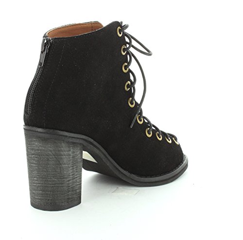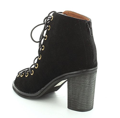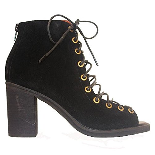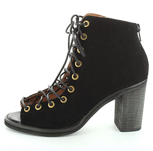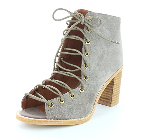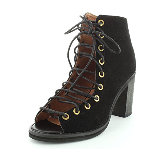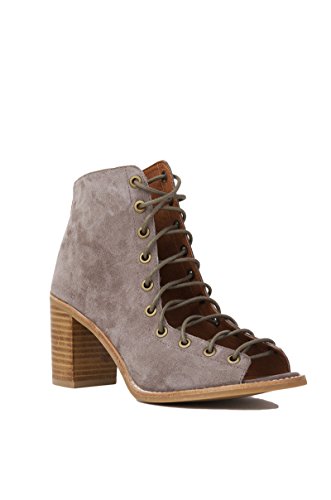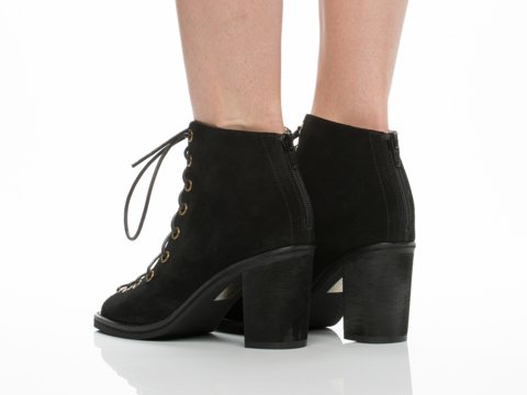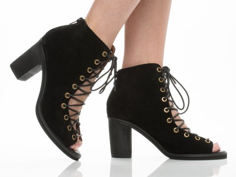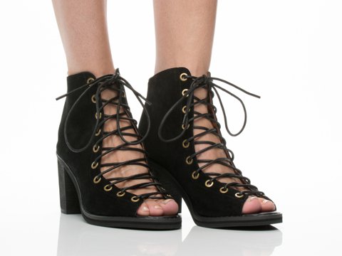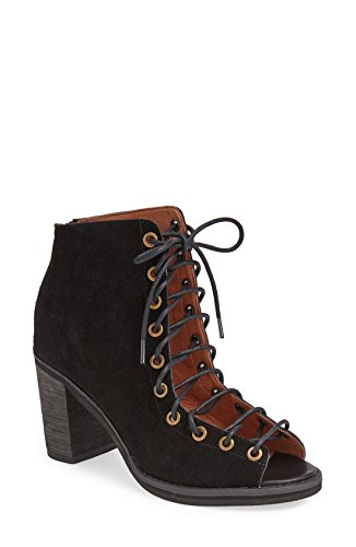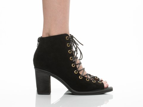Product DescriptionA sturdy stacked heel gives trend-right lift to a buttery-soft suede bootie cinched with corset-style laces. 3 inch heel (size 8.5). 5 1/2 inch boot shaft. Lace-up style with back-zip closure. Suede upper/leather lining/synthetic sole. By Jeffrey Campbell; imported. BP. Shoes.0