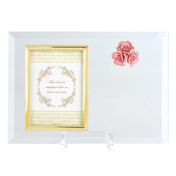 美しいガラスの輝きに繊細な磁器の小花が色を添えます。入学・卒業記念、結婚御祝い、出産・成人・還暦御祝い、退職御祝い、各種表彰などの幅広い贈り物のシーンにぜひ!!サンドブラストやシルクプリントなどでの名入れ加工ができる、専用ガラスフレームです。 |