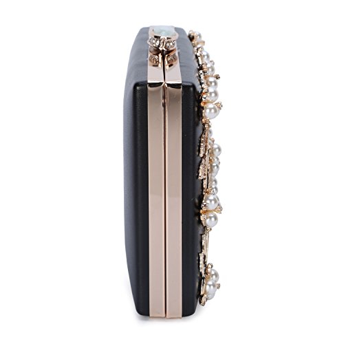 -. Feature : FABRIC: Rhinestones heads with these elegant pearl bead and patent leather cocktail purses. / SIZE: Approximate measurements- 7.49"(L)*1.97"(W)*5.12"(H). / FEATURES: Superior metal frame construction with shiny and fashion pearl outside ,glamorous party handbags available 3 stylist that can be used as a clutches, shoulder bags or cross-body bags. / CAPACITY: Inside can easily fit a cell phone(iphone 7s plus), wallet,car keys,compact mirror, lipstick, and some makeup. / OCCASION: Elegant pearl beaded design clutch bags perfect for Date, Prom, Banquet ,Wedding Parties or a Night Out and Formal Cocktail!!!