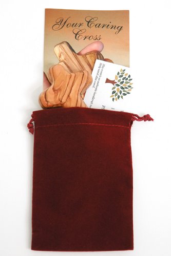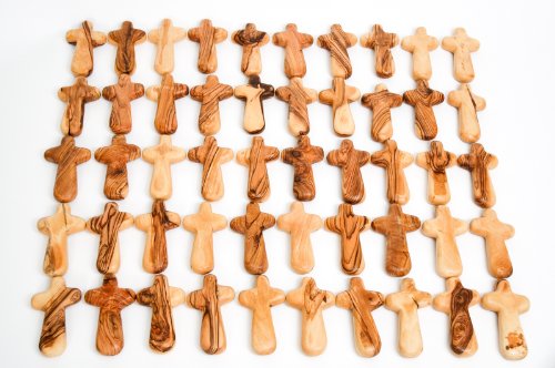 50 Olive Wood Holding Crosses comes with Velvet Bag & Certificate