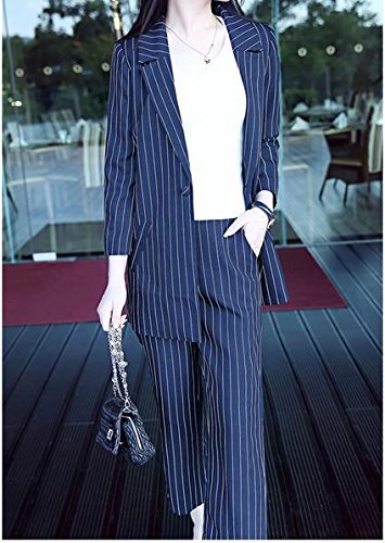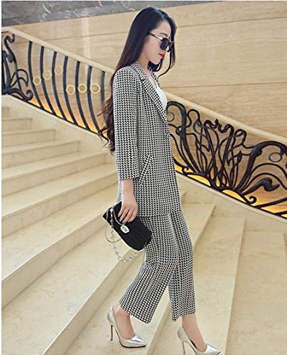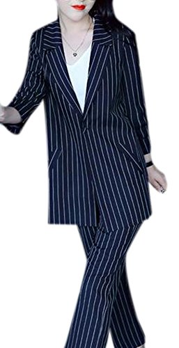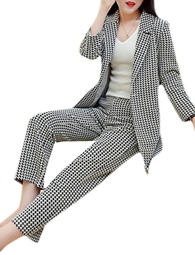 Lingswallow Women's Casual Lapel Long Sleeve Button Two Piece Pant Suit