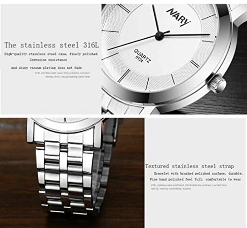-. Feature : Band Material: Tungsten Steel / Case Material: Refined Steel / Packet content: 1Pair Men and Women Wrist Watch