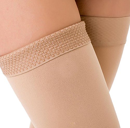 - ENJOY THE MOMENTS: 20-30 mmHg Open Toe Thigh High Compression Socks elaborated to enhance your daily performance, no more tired or fatigued legs! Reduces swelling, leg pain, numbness and circulatory problems. Graduated stocking for women and men so everyone can benefit from wearing them. Recommended in helping and preventing varicose veins, shin splints and post-surgical treatments.