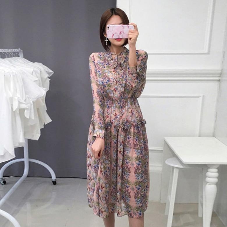 롱한 기장감의 맥시원피스 디자인으로