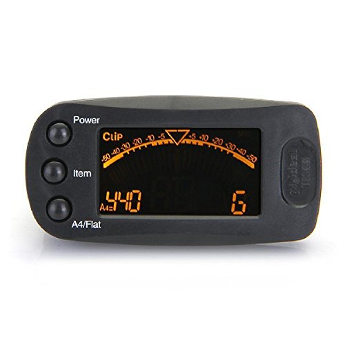 Studio : Ray-JrMALL Publisher : Ray-JrMALL Product Description Features: Big LCD screen display and super bright backlight design, deliver a much more clear and fresh vision for you. The clamp can rotate by 360 degree, simple and practical, can meet your needs of various viewing angles. High tuning sensitivity, speed and accuracy. Easy and convenient to operate. Can set 1-2 standard flat tunings. The special pick-placing structure design on the back. Comes with a piece of pick. Easily portable digital clip-on type, can be clipped on any string instruments. A4 standard: 430-450HZ. Tuning range: A0(27.5Hz)-C8(4186 Hz). Tuning accuracy: 0.5 cent . Color: Black. Power supply mode: 1 x Button battery CR2032 ( not provided ). Package included: 1 x Tuner. 0