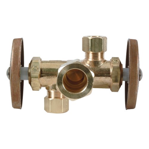 Brass Craft CR1900DV R 1/2-Inch Nom Comp by 3/8-Inch O.D. Comp by 1/4-Inch O.D. Comp Brass Craft CR1900DV R Dual Outlet Stop, Rough Brass