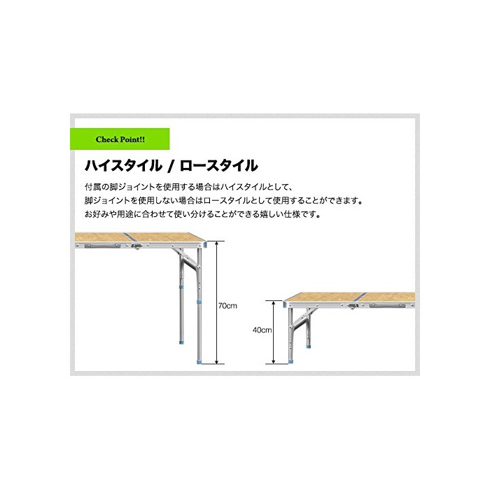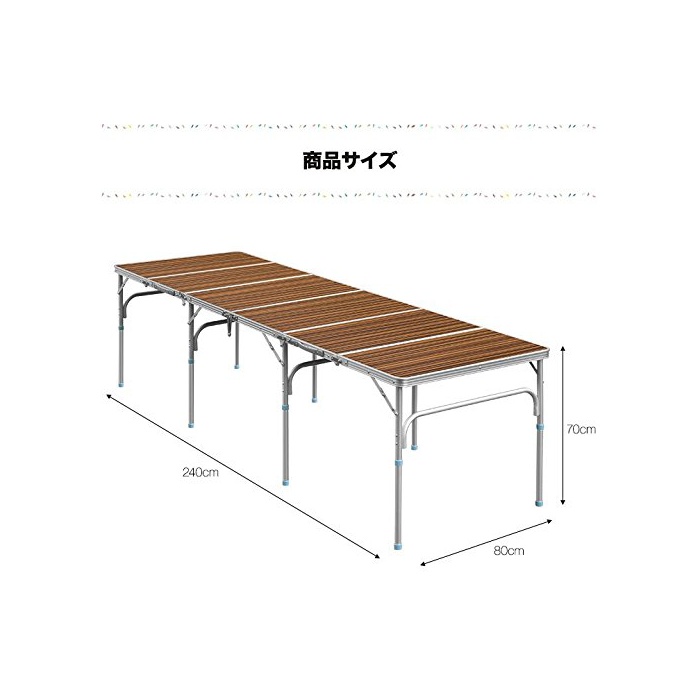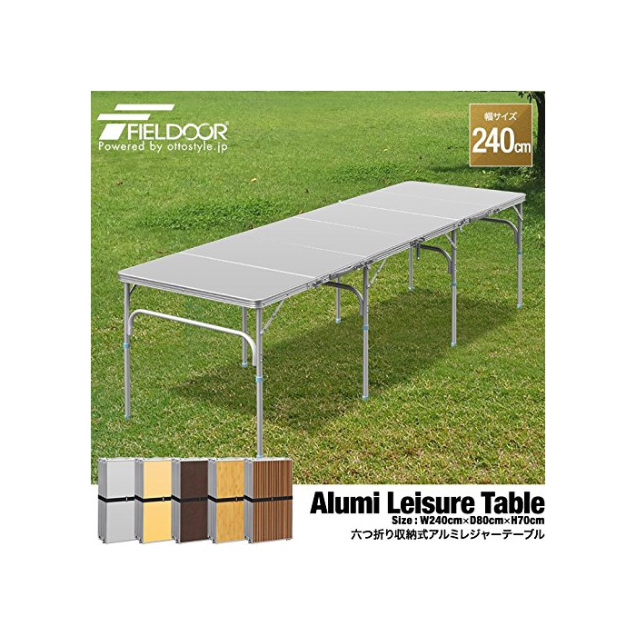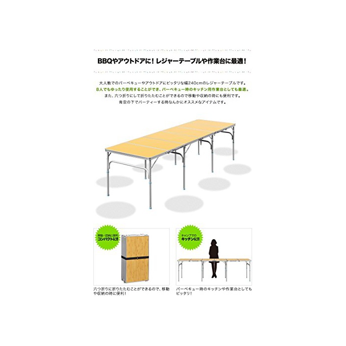 원본상품명: FIELDOOR 六つ折り納式アルミレジャテブル 幅240×行80×高さ70cm ハイスタイル&ロスタイル 脚8本